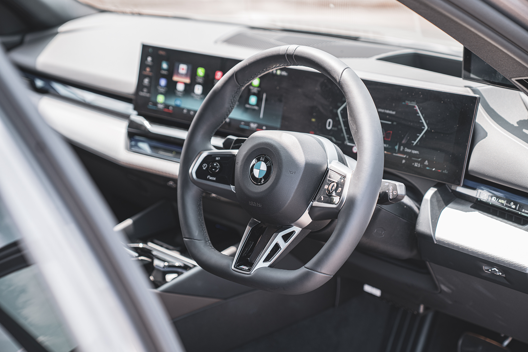 Inside, the cabin is a showcase of BMW’s latest design direction. A curved display panel stretches across the dash, combining a 12.3-inch digital instrument cluster with a 14.9-inch infotainment screen. The layout is clean, modern, and intuitive to use.