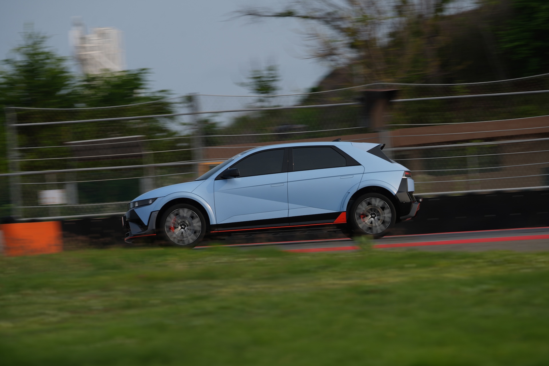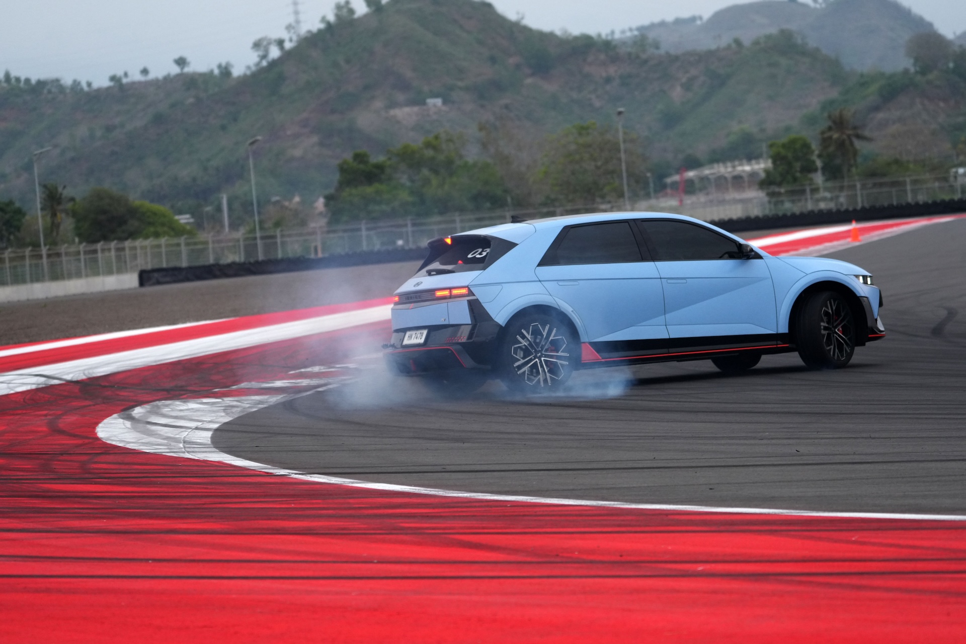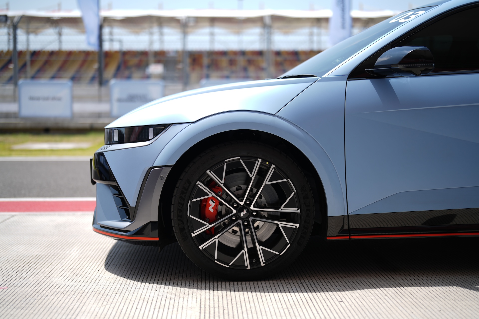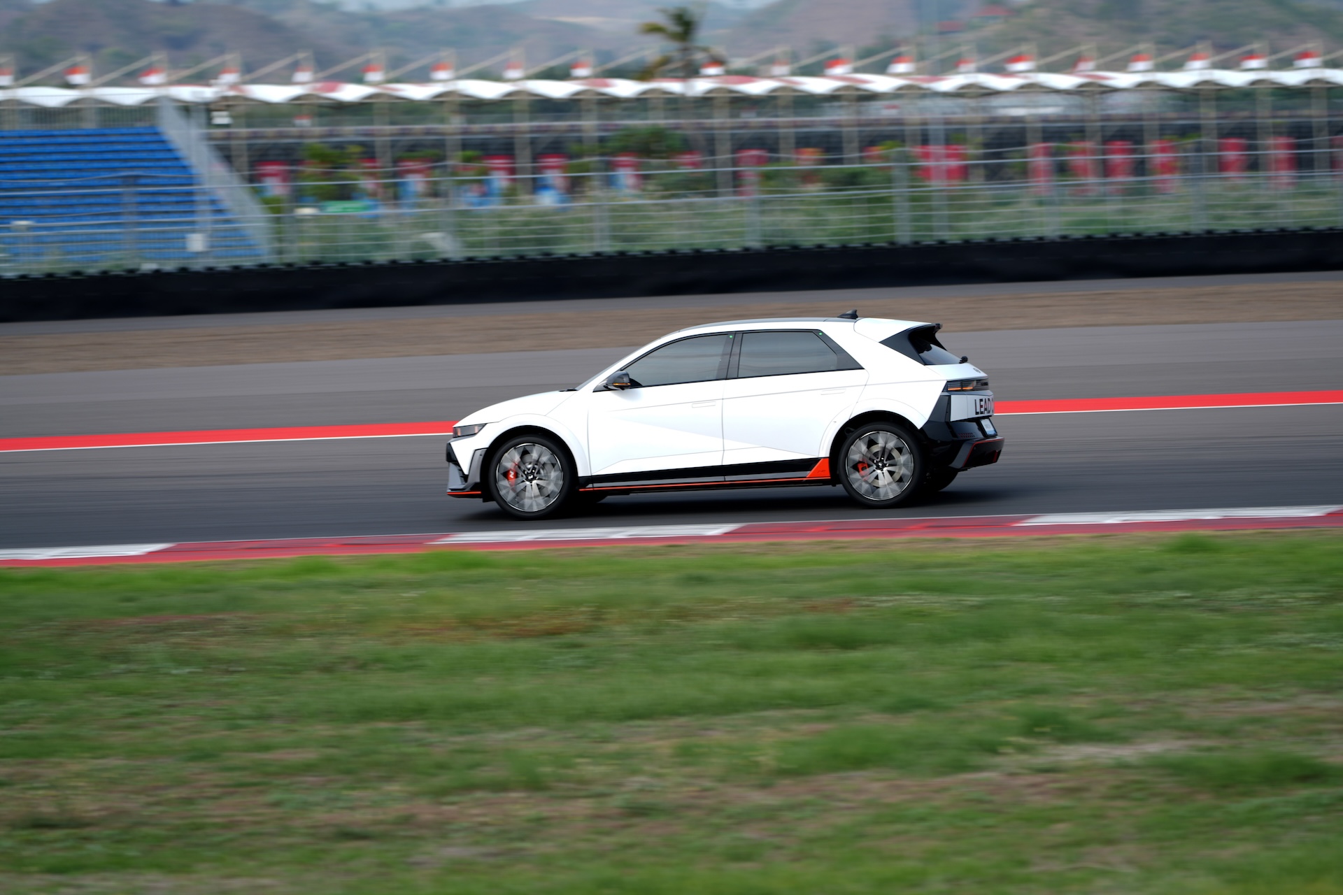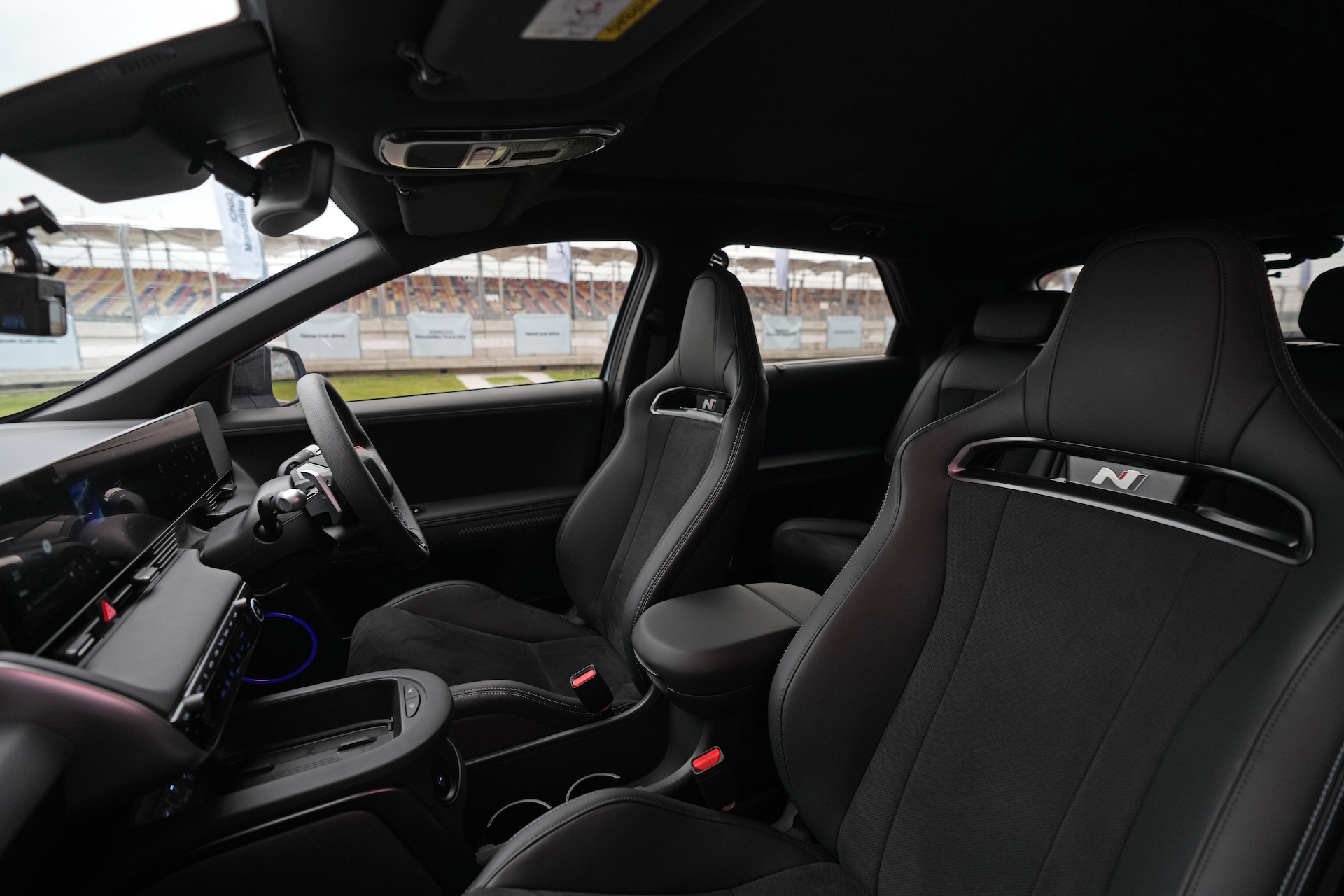 Stopping power is courtesy of the largest brakes ever fitted to a Hyundai; 15.7-inch rotors paired with four-piston calipers up front. Add regenerative braking, capable of delivering 0.6g of deceleration on its own, and the result is consistent, fade-free performance even during intense track sessions.