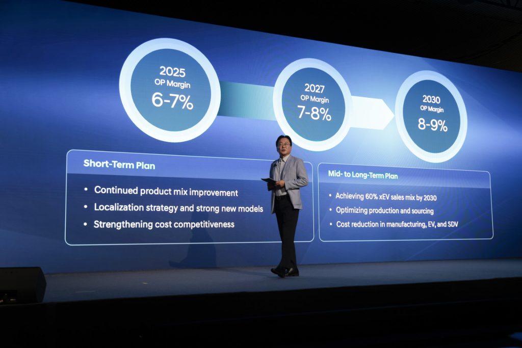 CFO Seung Jo (Scott) Lee detailed a pragmatic recalibration: revenue growth guidance nudged up to 5–6%, while the operating-profit-margin band eases to 6–7% to account for fresh U.S. tariffs. That’s paired with a KRW 77.3 trillion investment plan from 2026–2030 aimed at sharpening software talent, localising capacity and future-tech footholds.