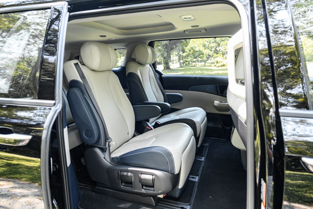 The Carnival Hybrid’s interior is as practical as they come. Clever design choices like the fold-flat third row and nicely appointed captain chairs, alongside big door pockets and well-thought-out cupholders all contribute to a great occupant experience.