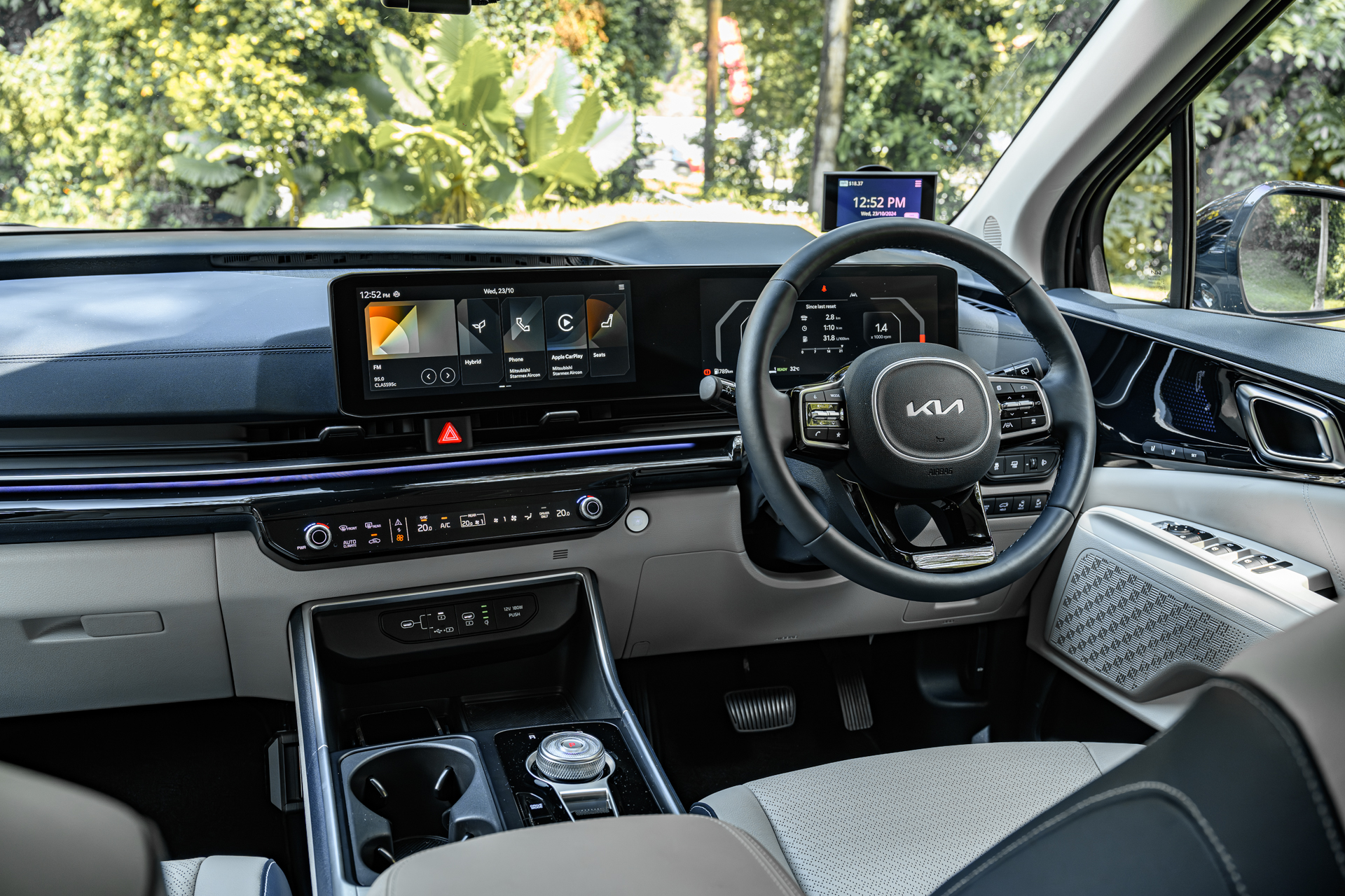 The outgoing Carnival was already pretty premium, and this new hybrid continues that trend. A 12.3-inch touchscreen takes centre stage with wireless Apple CarPlay and Android Auto.