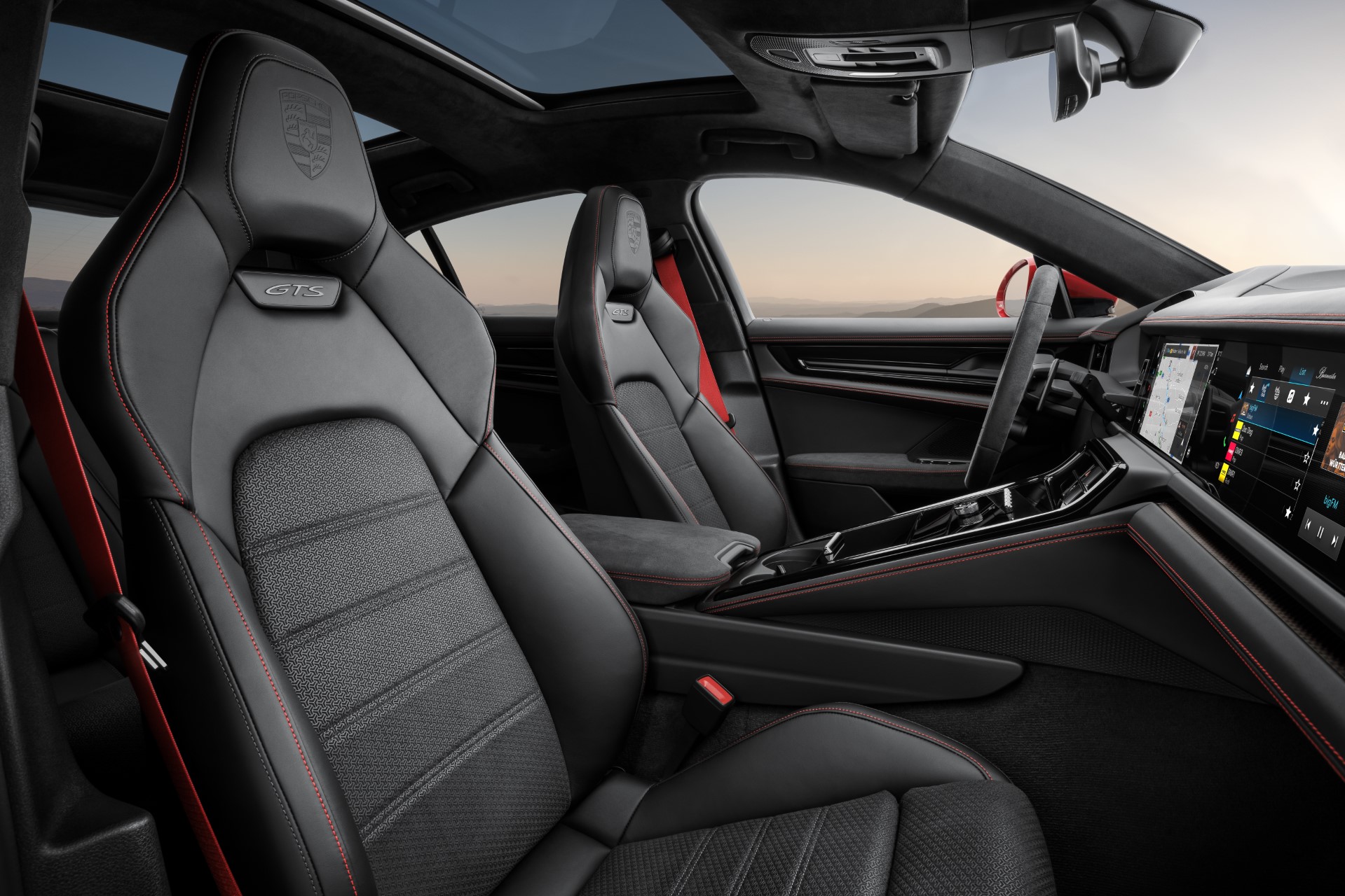 The GTS model exudes sportiness with black logos, a unique front section, dark-tinted HD matrix LED headlights, and red brake callipers. Inside, the lavish use of suede-like Race-Tex material and GTS-specific interior packages in vibrant colours like Carmine Red and Slate Grey Neo adds to its distinctive appeal.