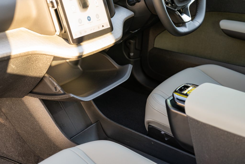 Like the Tesla Model 3, the EX30 has done away with most physical buttons. Climate controls, mirror adjustments, even the fog lights are all buried in the touchscreen.
